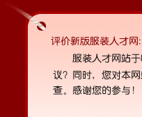 请您为新版服装人才网站提出您的意见或建议,如果您对新版服装人才网有什么建议,也请写在这里。